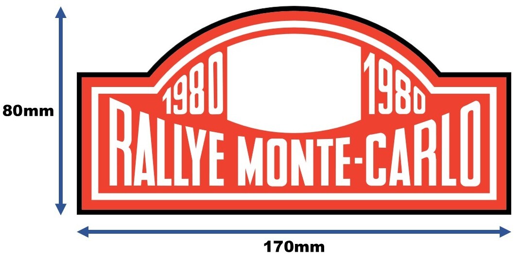 經典的 RALLYE MONTE-CAELO 標牌,全鋁合金製造,厚度達 1.5 mm,堅固耐用。表面為立體蝕刻圖案,產品附有兩組數字貼紙,可依個人喜好自行選擇號碼貼於掛牌上。